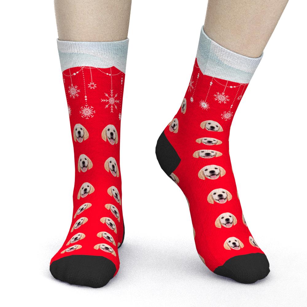 Custom Photo Socks Snowflake Pet Theme Christmas Gift