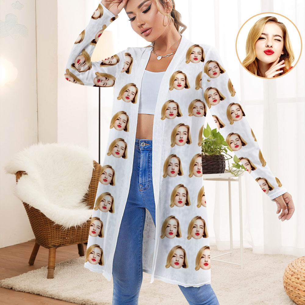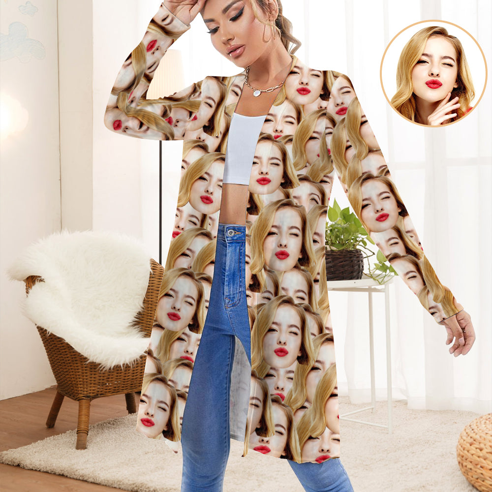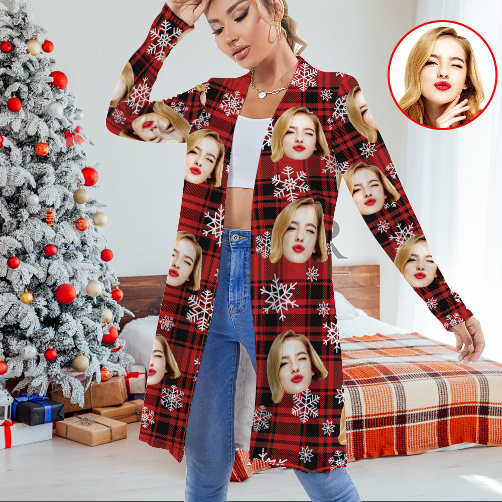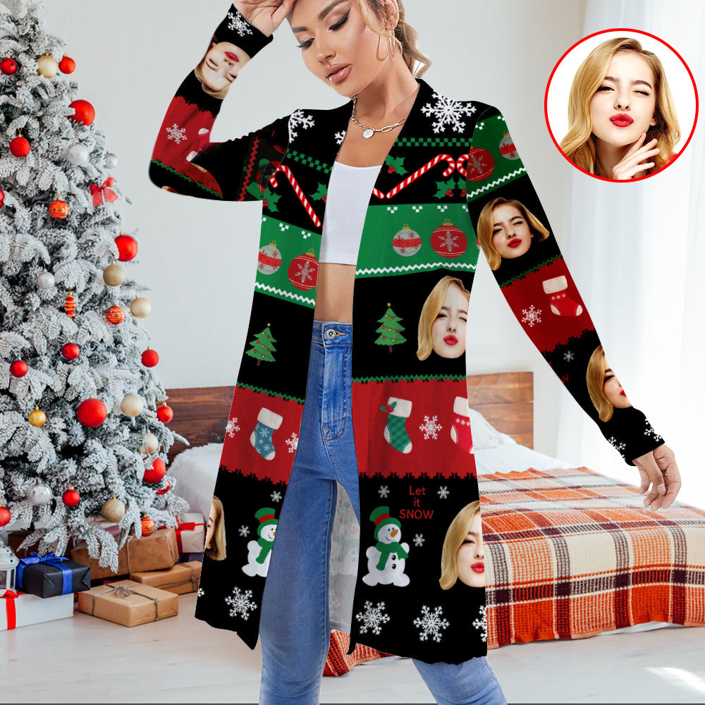 Personalised Face Cardigan Women Open Front Cardigans for Christmas Gifts