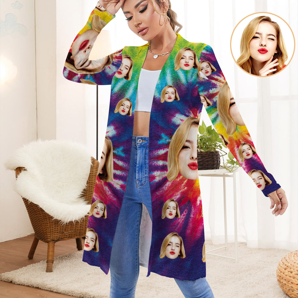 Personalised Face Rainbow Color Cardigan Women Long Sleeve Open Front Cardigans
