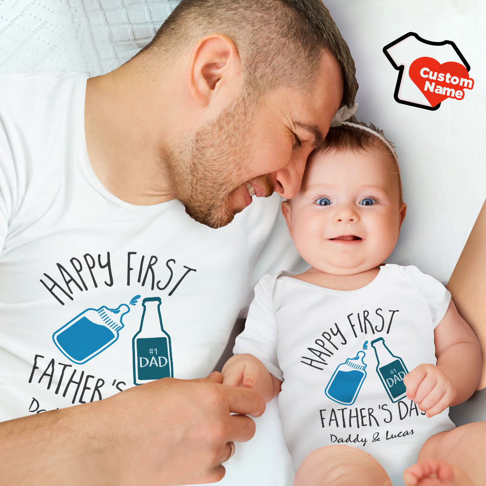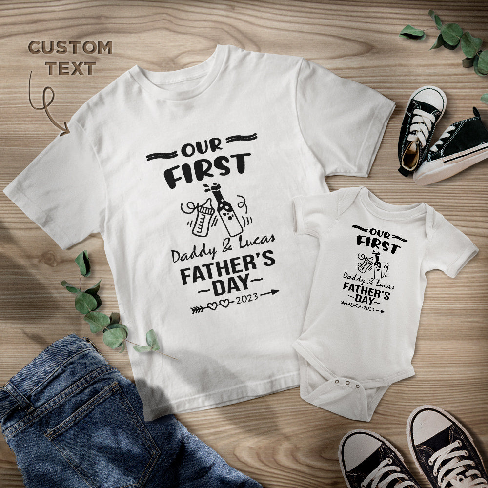Custom Name Shirt Our First Father's Day Together Gifts For Dad Baby Bottle Daddy And Baby Matching Outfits