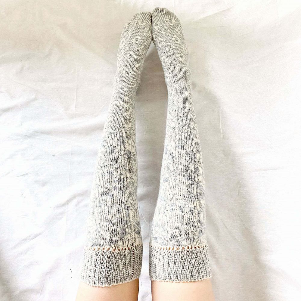 Keeps Warm In Winter Diamond Straps Overknee Long Tube Pile Socks