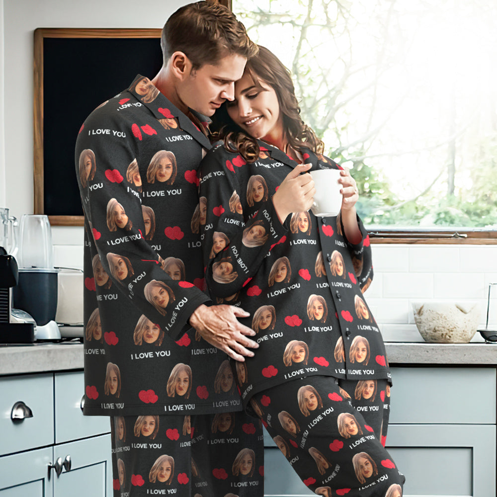 Custom Face Long Sleeve Pajamas Sleepwear Set - I Love You