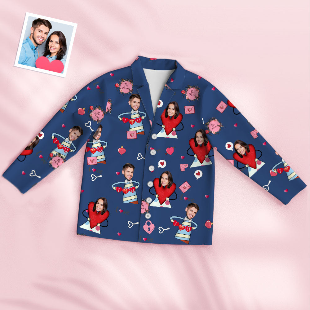 Custom Face Pajamas Personalized Photo Heart Women Men Pajama Set - Be Mine