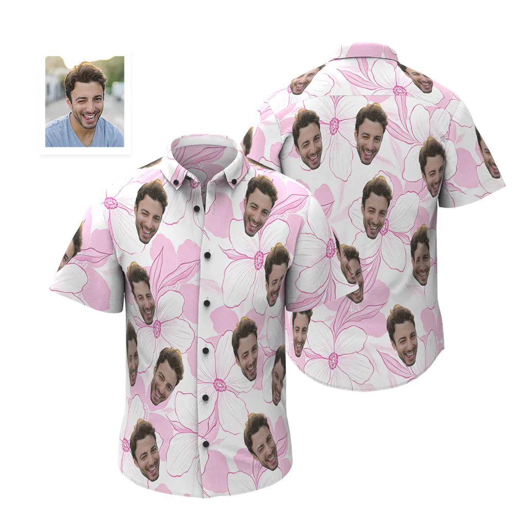 Custom Face Hawaiian Shirt Personalised Men's Photo Shirt Valentine's Day Gift For Him Pink Flower