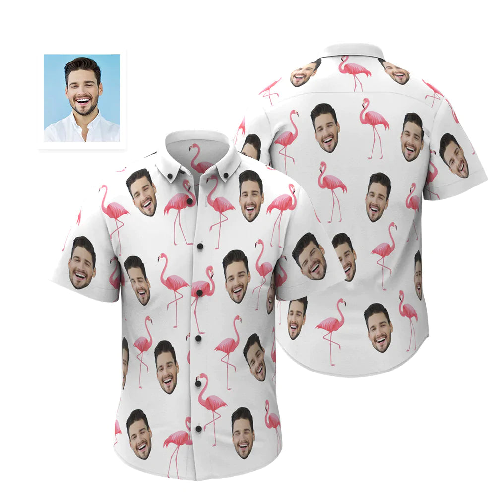 Custom Face Hawaiian Shirt Personalised Men's Photo Flamingo Shirt Valentine's Day Gift For Him