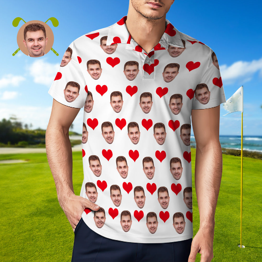 Men's Custom Face POLO Shirt Personalised Golf Shirts For Him Love Heart