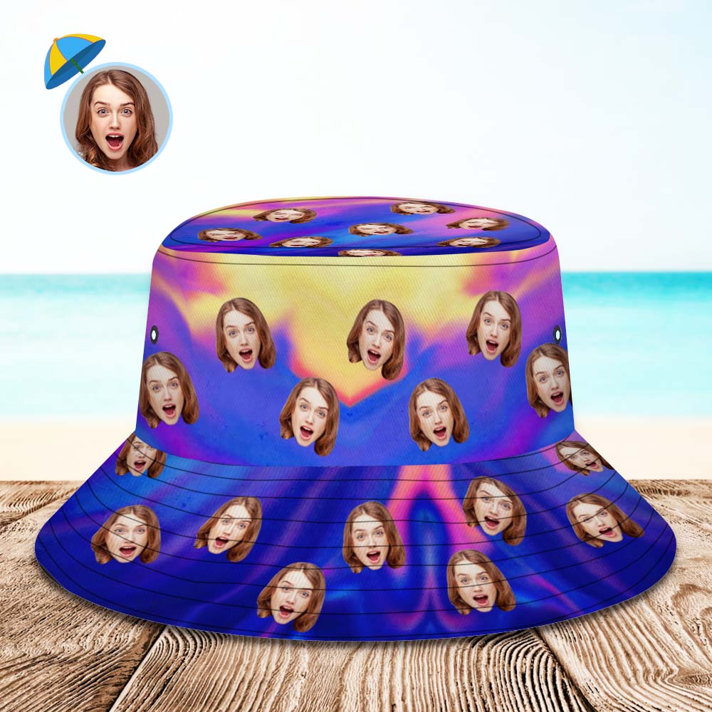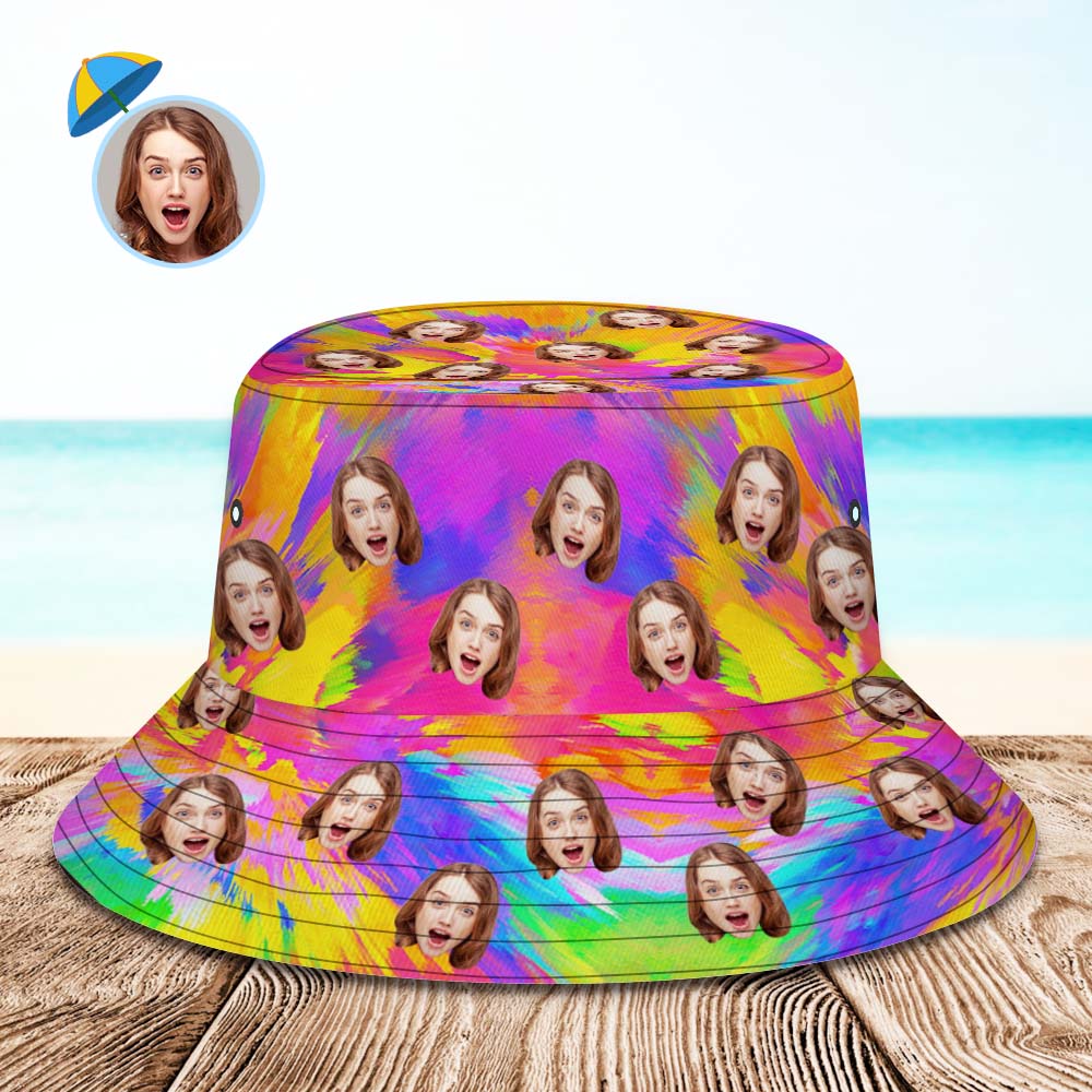 Custom Face Bucket Hat Unisex Personalised Wide Brim Outdoor Summer Cap Hiking Beach Sports Hats Colorful Abstract Texture