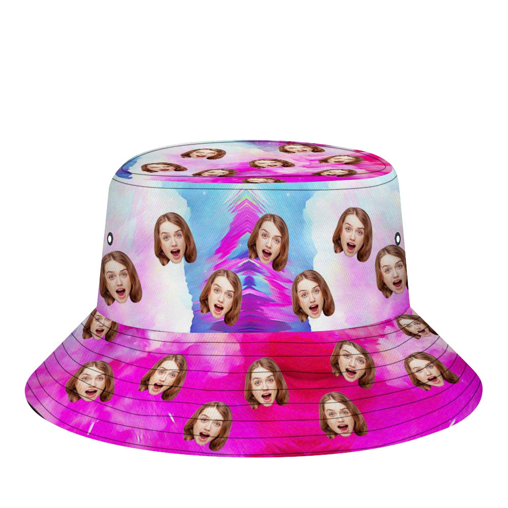 Custom Face Bucket Hat Unisex Personalised Wide Brim Outdoor Summer Hats Pink and Light Blue Abstract Texture