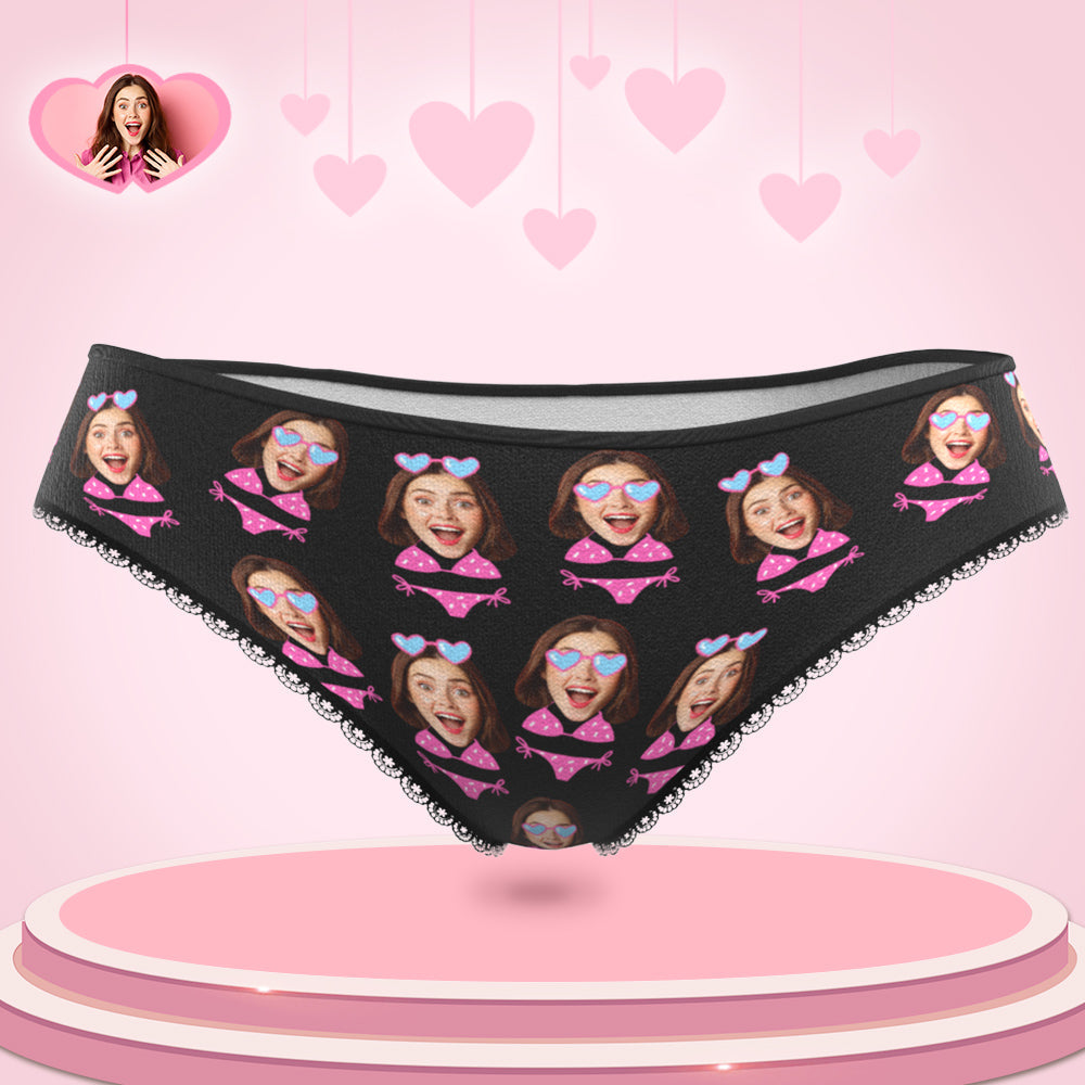 Personalised Bikini Face Panties Custom Womens Photo Black Underwear Funny Gift For Her