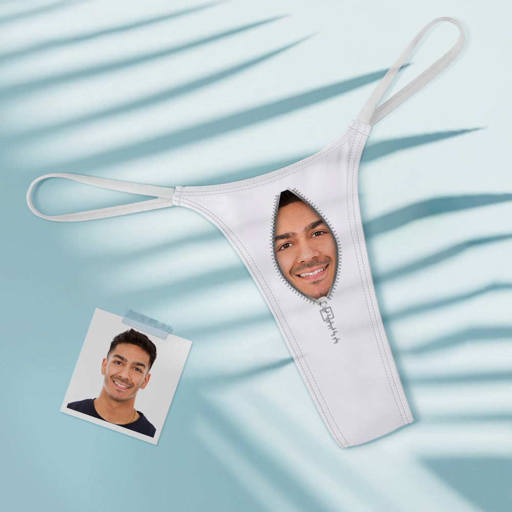 Custom Face Women's Tanga Thong Choking Hazard Warning Valentine's Day GIft