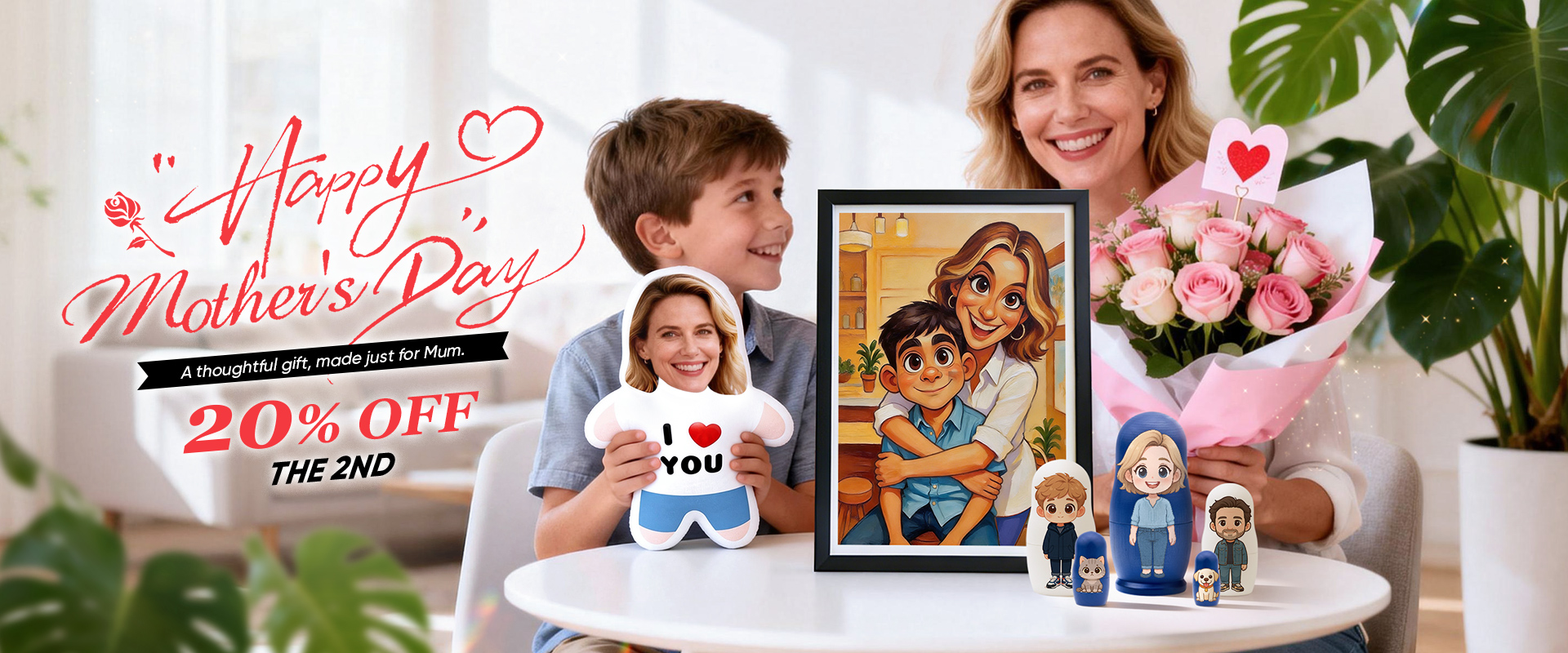 Happy Mother's Day | Personalized Cartoon Portrait Frame | Custom Funny Caricature Gift for Family -