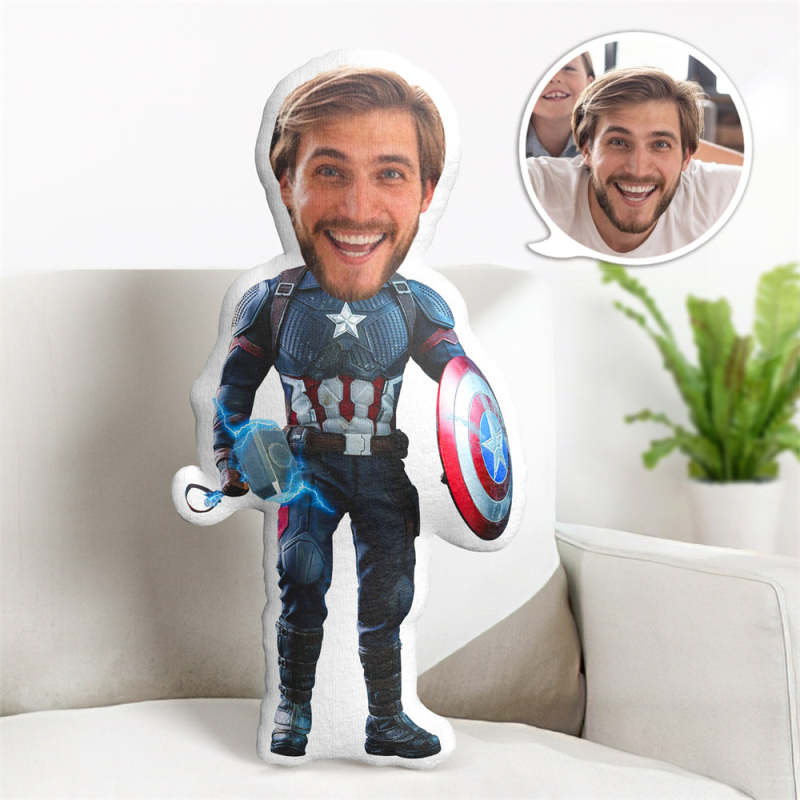 Custom Face Pillow Superhero Doll Personalized Captain America with Thor's Hammer MiniMe Pillow Gifts for Him