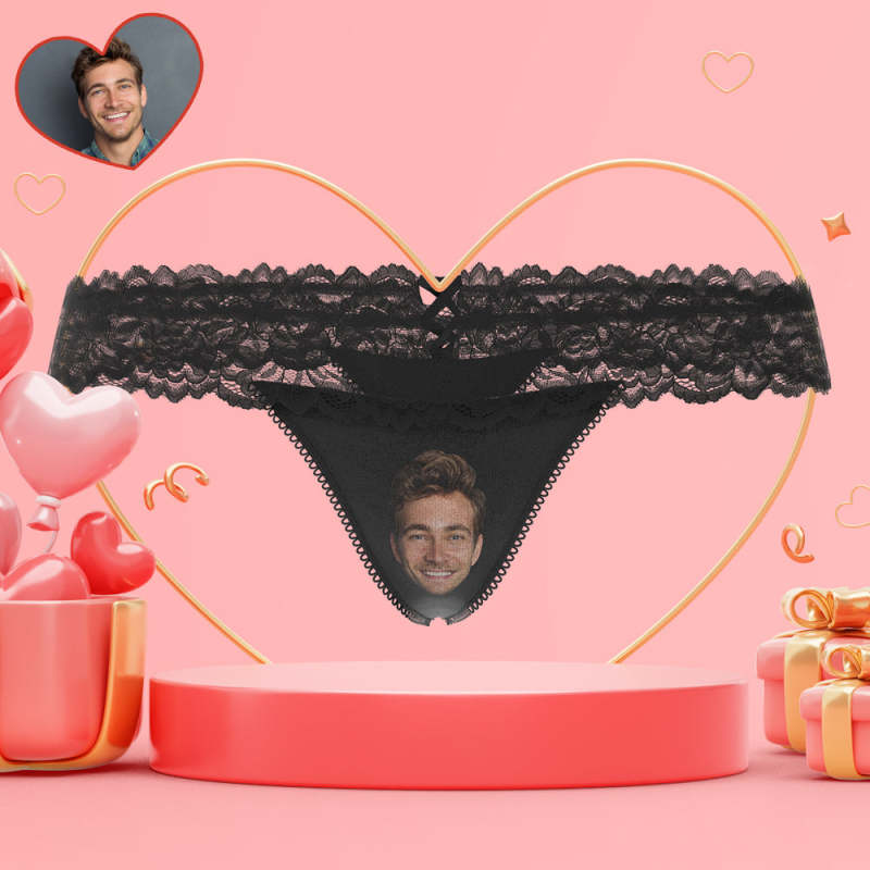 Custom Boyfriend Face Women's Lace Thong Naughty Gift for Her