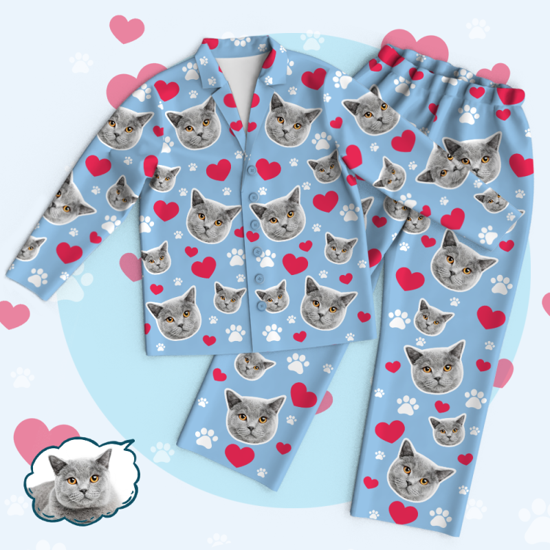 Mother's Day Custom Cat Face Photo Pajamas Suit - Unique Pet Gifts Idea