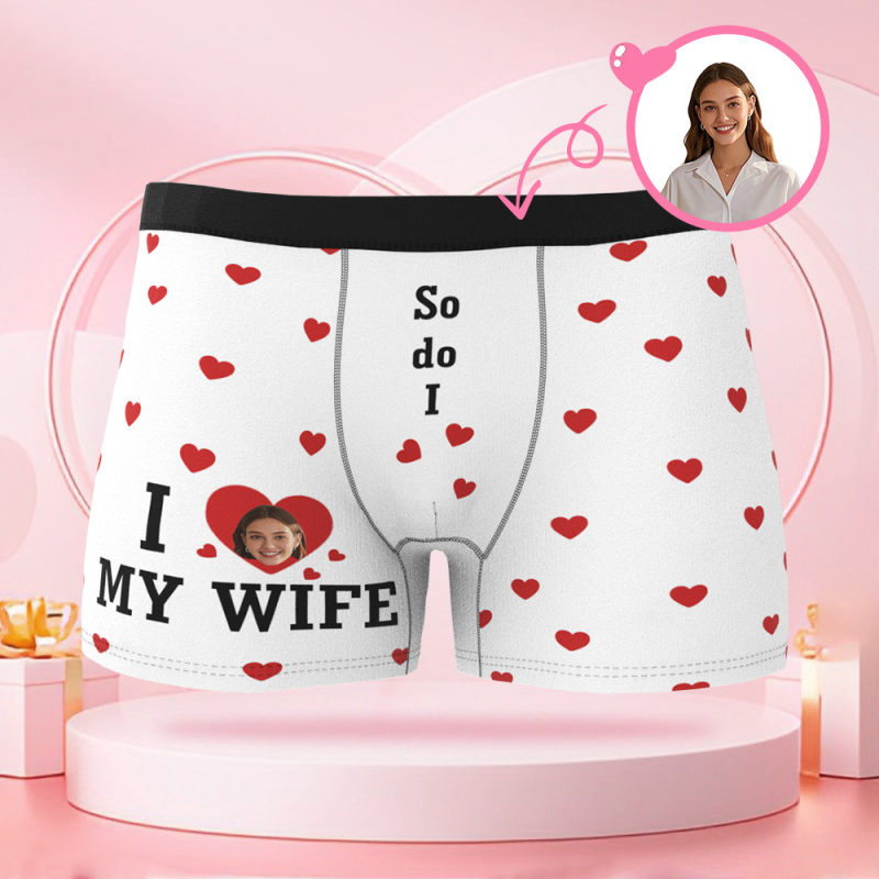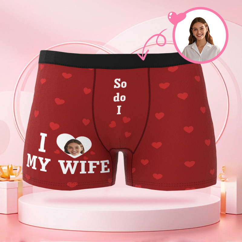 Custom designed men's briefs in heart shape with photo, boxer shorts for Valentine's Day with personalized faces Valentine's Day gifts for boyfriend