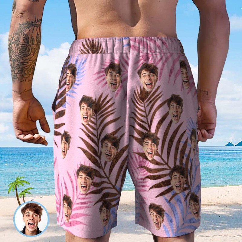 Custom Face Beach Short Personalized Photo Swim Trunks Men Random Tropical Print Shorts - MyPhotoBoxerUk Custom Face Beach Short Personalized Photo Swim Trunks Men Random Tropical Print Shorts - MyPhotoBoxerUk