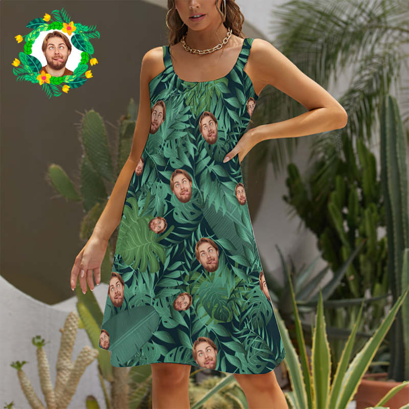 Custom Face Beach Sling Skirt Women Summer Long Skirt Sexy Seaside Vacation Dress Cool leaves
