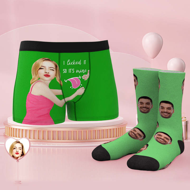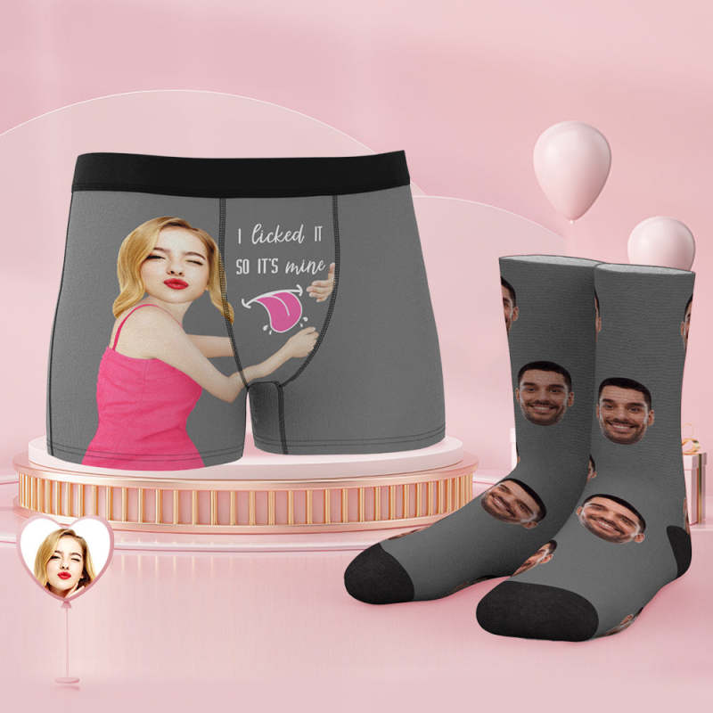 Custom Face Boxer Shorts And Socks Set I Licked It So It's Mine