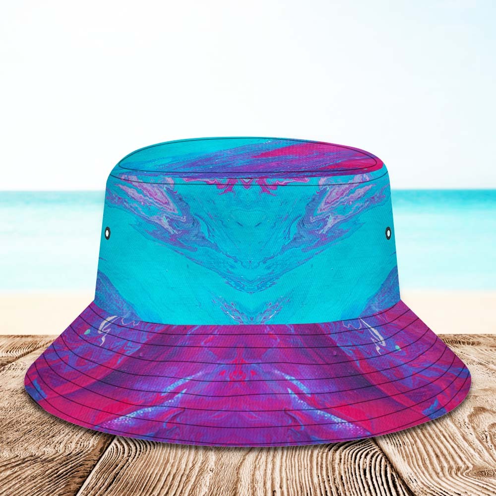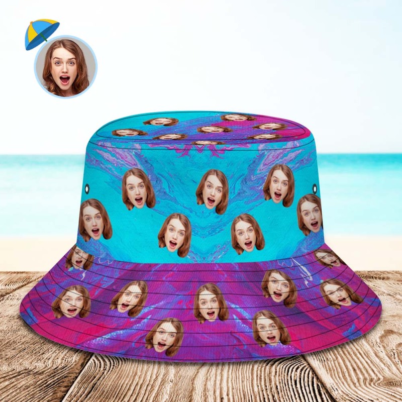 Custom Face Bucket Hat Unisex Personalised Wide Brim Outdoor Summer Hats Blue and Red Oil Painting Style