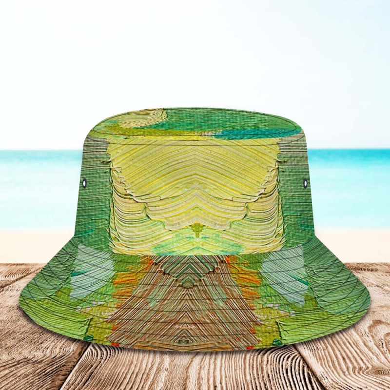 Custom Face Bucket Hat Unisex Personalised Wide Brim Outdoor Summer Hats Green Oil Painting Style