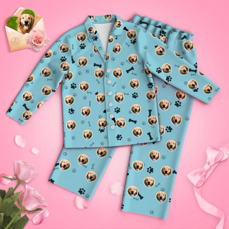 Custom Face Dog And Bone Pyjamas Gift for Mum