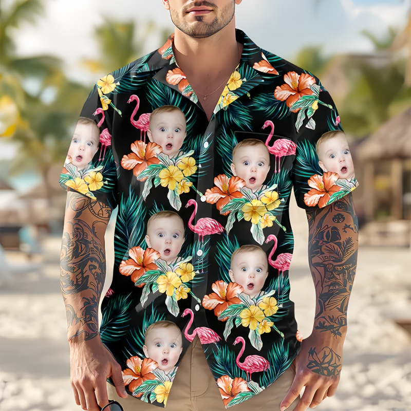 Custom Face Flamingo Hawai Shirt Summer Gift, Family Gift