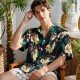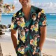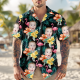This Hawaiian shirt features a print, a button closure, and short sleeves.