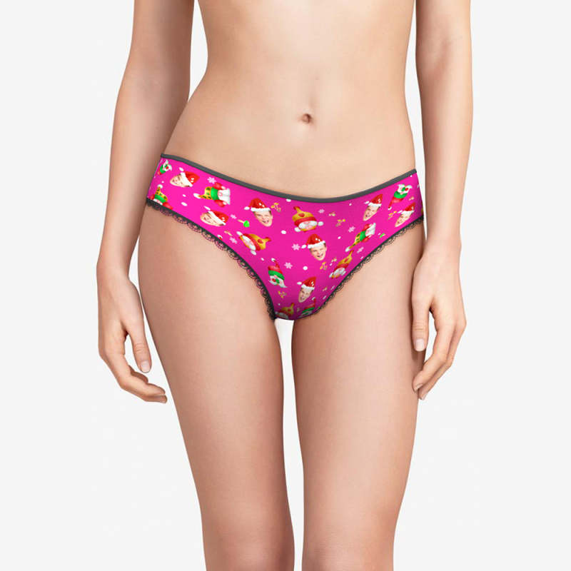 Custom Face Happy Gnomes Pink Christmas Women's Panties Personalised Pink Christmas Gift Custom Face Happy Gnomes Pink Christmas Women's Panties Personalised Pink Christmas Gift