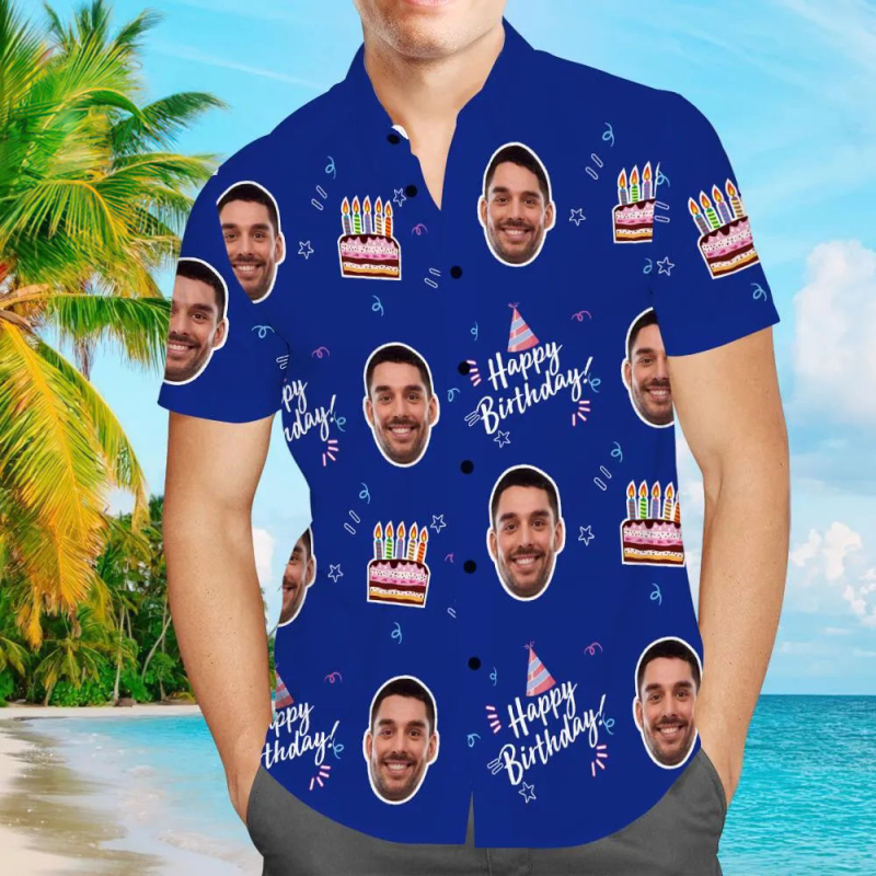 Custom Face Hawaiian Shirt All Over Print Men's Shirt Happy Birthday