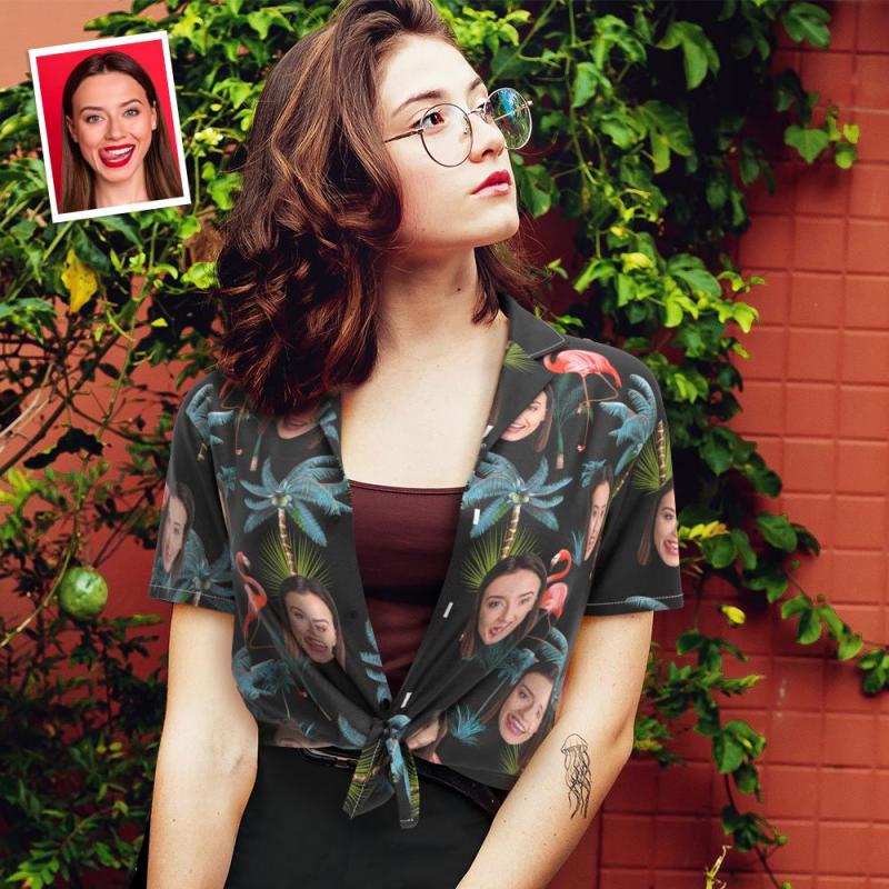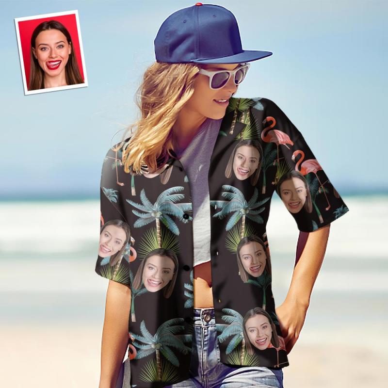 Custom Face Hawaiian Shirt for Women Personalized Women's Photo Hawaiian Shirt Gift for Her - Flamingo Nights