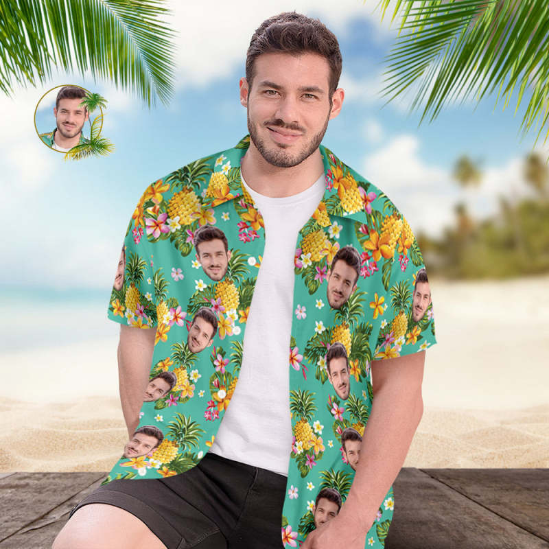 Custom Face Hawaiian Shirt Men's Popular All Over Print Hawaiian Beach Shirt Holiday Gift - Hawaiian Flowers and Pineapples