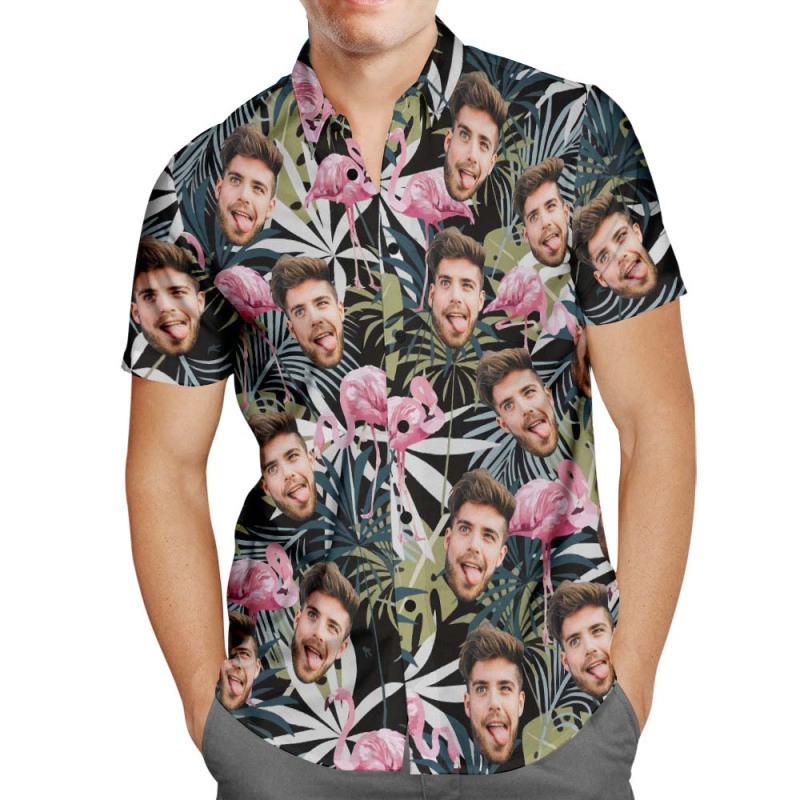 Custom Face Hawaiian Shirt Leaves and Flamingo Personalized Aloha Beach Shirt For Men