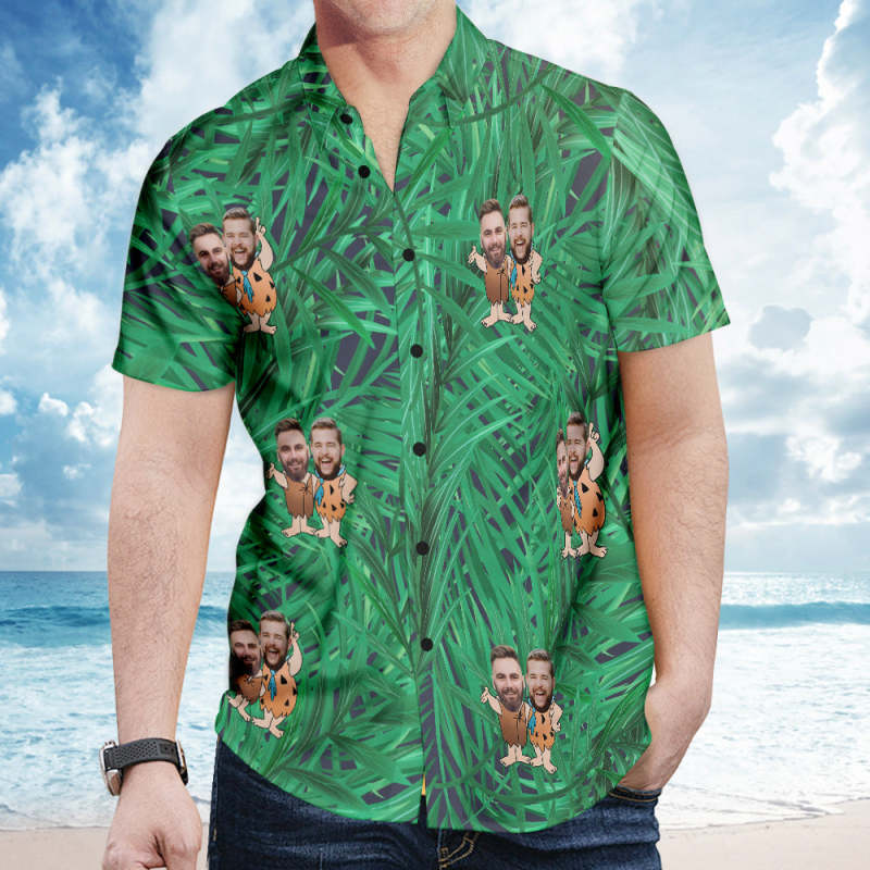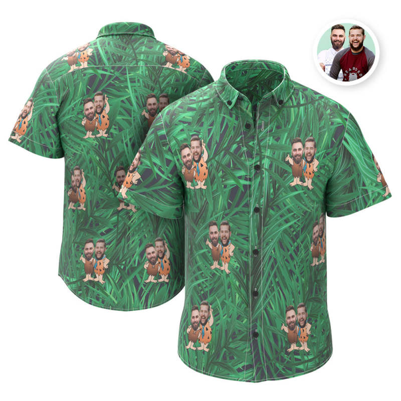 Custom Face Hawaiian Shirt Personalized Cartoon Summer Shirts - Green Leaves Custom Face Hawaiian Shirt Personalized Cartoon Summer Shirts - Green Leaves