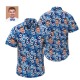 Custom Face Hawaiian Shirt Personalised Men's Photo Blue Shirt Hibiscus Pattern