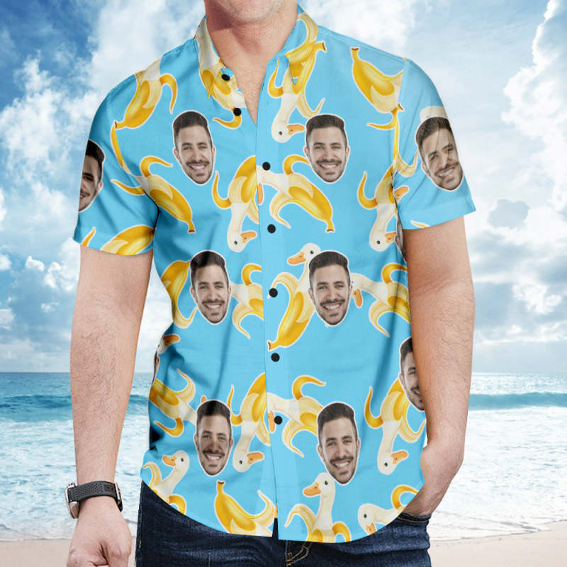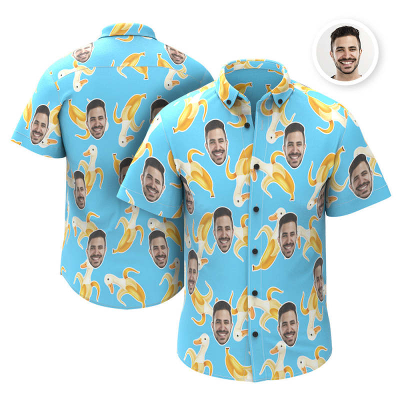 Custom Face Hawaiian Shirt Personalized Photo Banana Duck Summer Shirts for Men - Blue Custom Face Hawaiian Shirt Personalized Photo Banana Duck Summer Shirts for Men - Blue