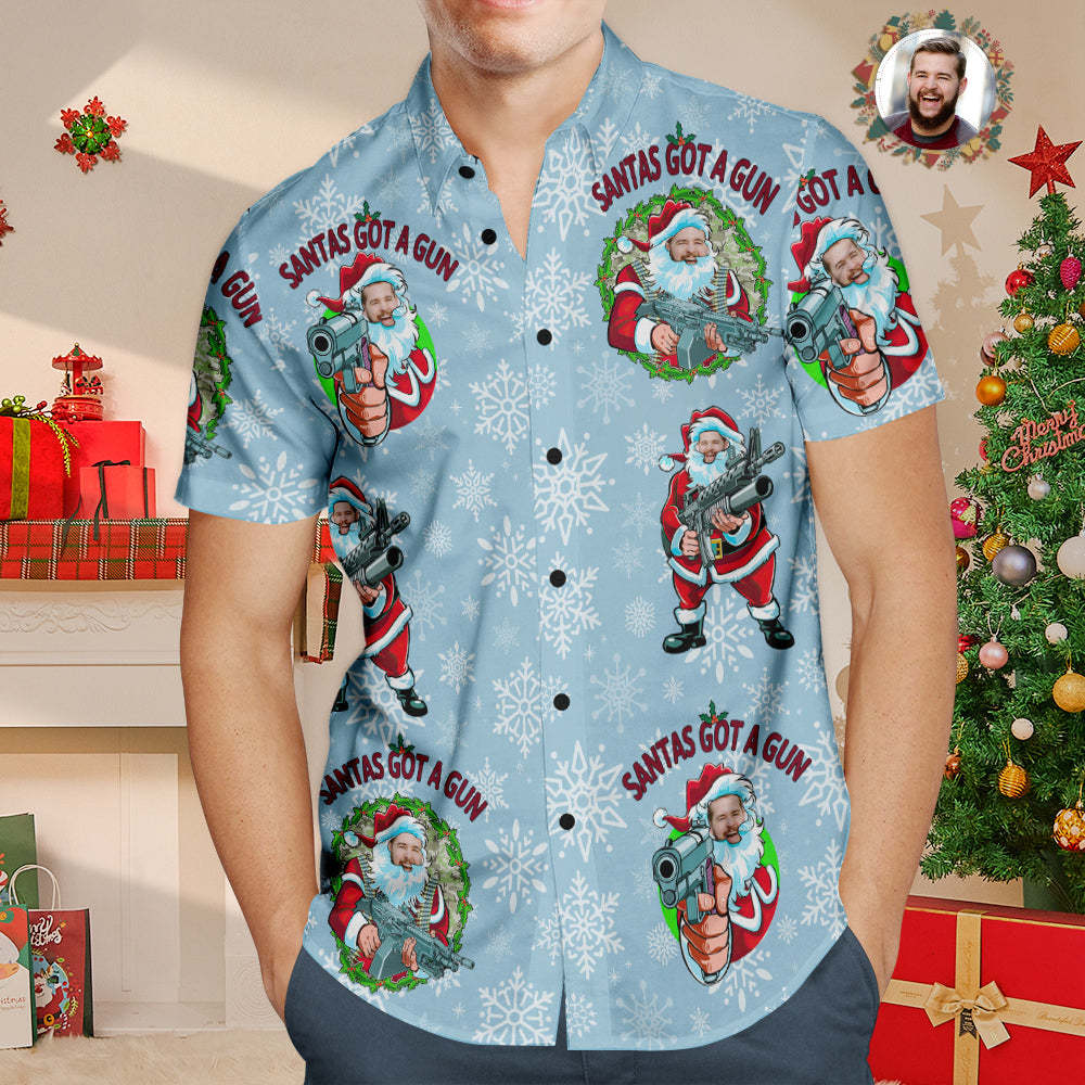 Custom Face Hawaiian Shirt Personalised Photo Funny Santa Claus Christmas Shirt With Machine Gun
