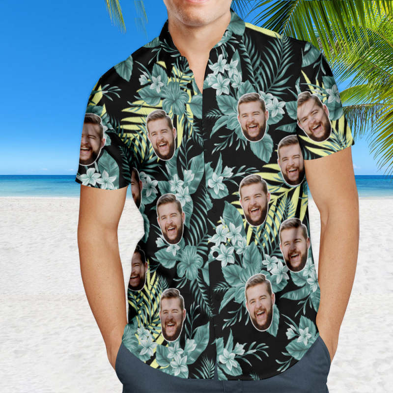 Custom Face Hawaiian Shirt Personalized Photo Summer Shirts for Men - Green Flowers Custom Face Hawaiian Shirt Personalized Photo Summer Shirts for Men - Green Flowers