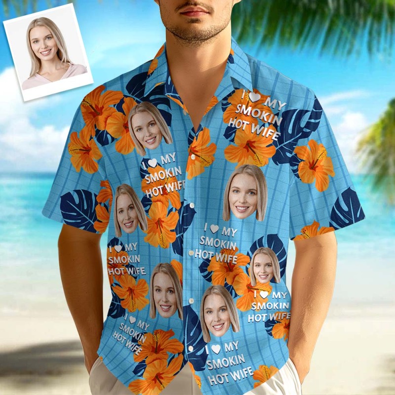 Custom Face Hawaiian Shirts I Love My Hot Wife Girlfriend Perfect for Summer Vacation Clothes Gifts for Men