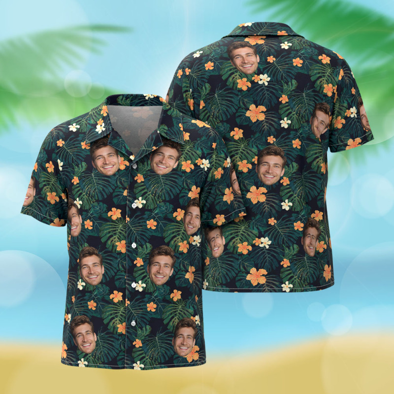 Custom Face Hawaiian Shirts Floral and Leaf Patterned Shirts Perfect for Summer Vacation Clothes Gifts for Men