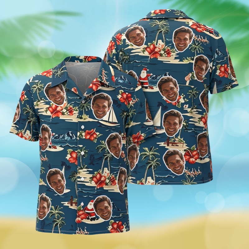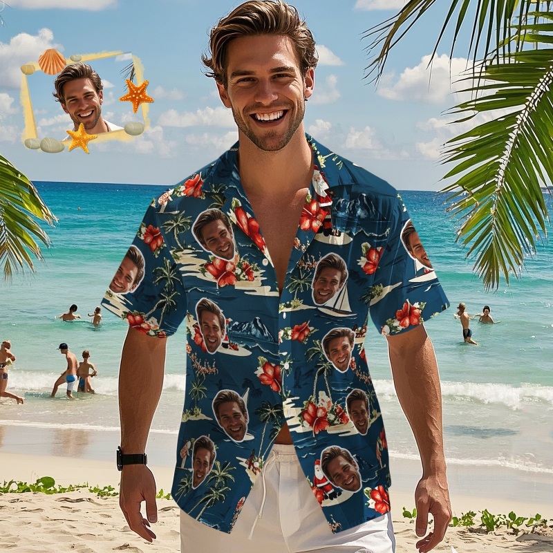 Custom Face Hawaiian Shirts Floral and Coconut Tree Patterned Shirts Perfect for Summer Vacation Clothes Gifts for Men