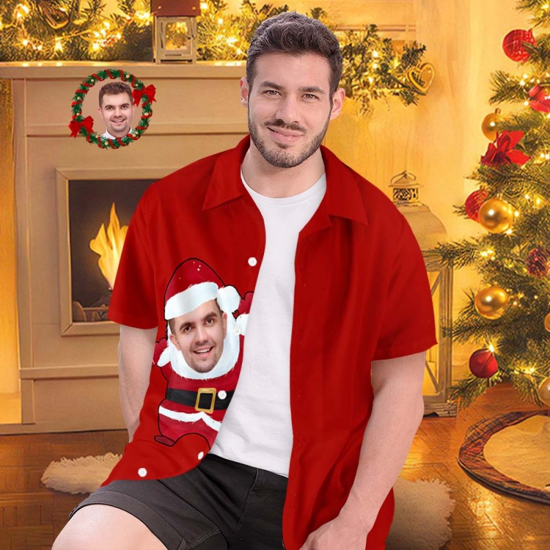 Custom Face Hawaiian Shirts Personalised Photo Gift Men's Christmas Shirts Santa Claus Red Shirt