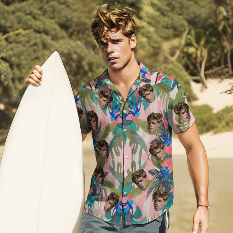Custom Face Leaves Hawaiian Shirts Flamingo Hawaiian Shirt For Dad Father's Day Gift