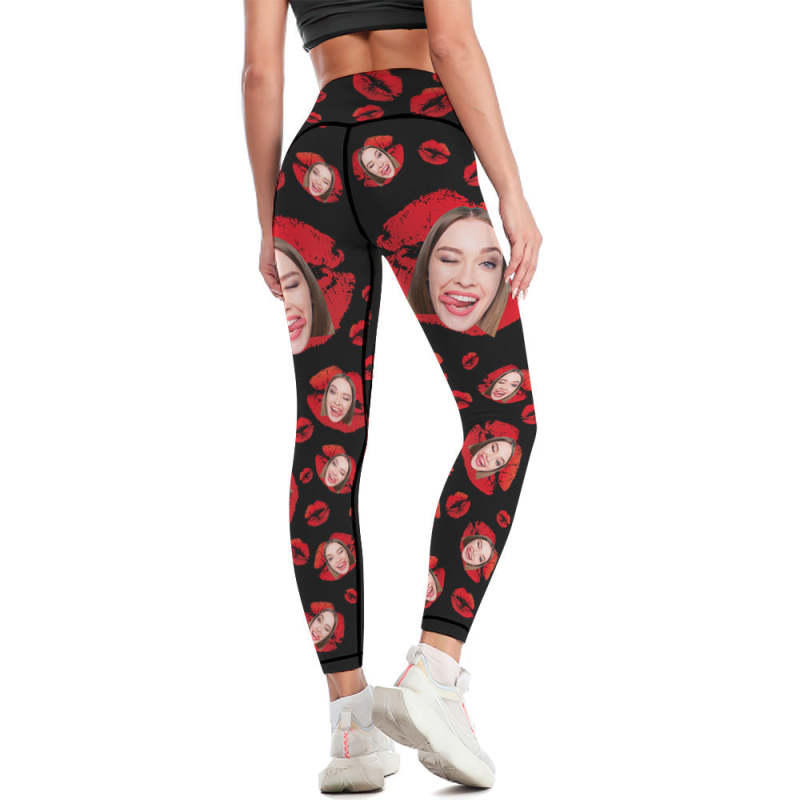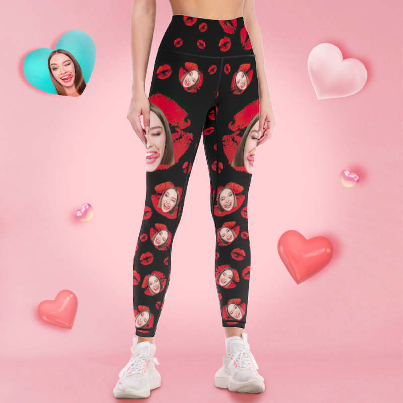 Custom Face Leggings and Tank Top Yoga Clothing Suit Gift for Her - Red Lips