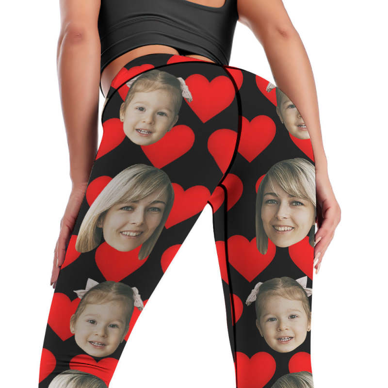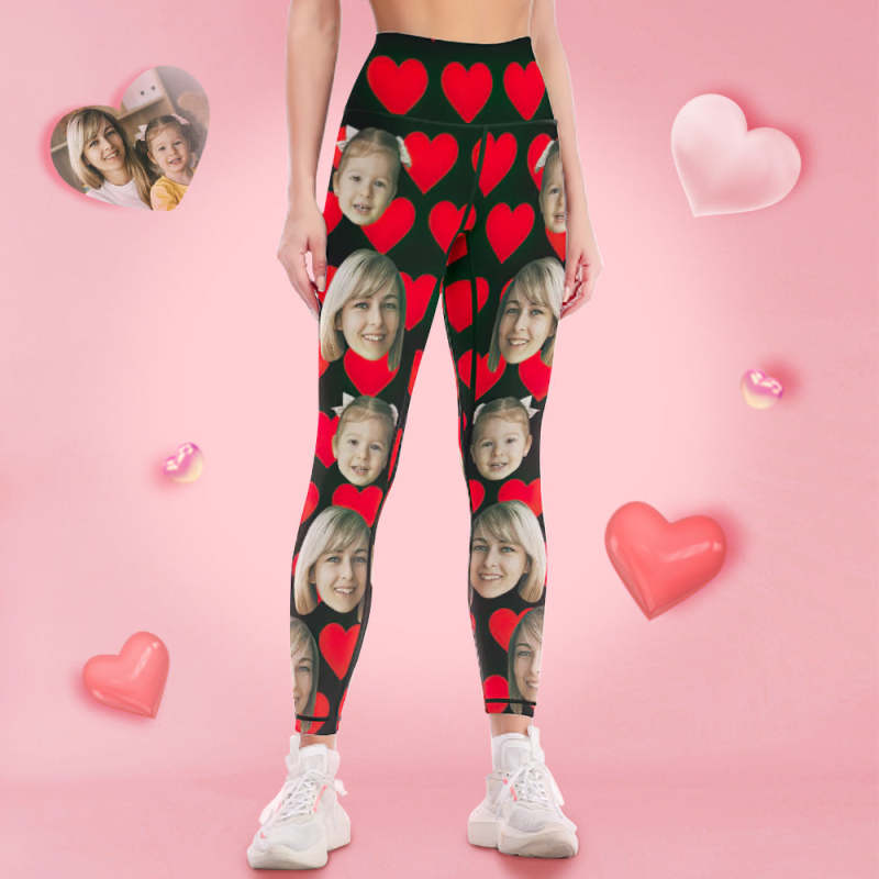 Custom Face Leggings and Tank Top Yoga Clothing Suit Mother's Day Gift - Red Heart