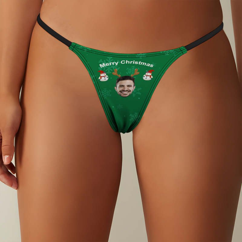 Custom Face on Women's Underwear Thongs Panty Christmas Gift for Her - Merry Christmas