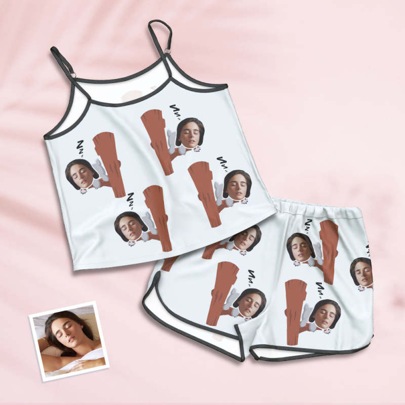 Custom Face Pajamas Suspender Sleepcoat Shorts Lingerie Set Summer Sleepwear - Koalas
