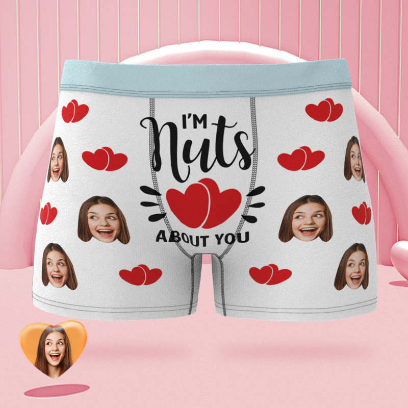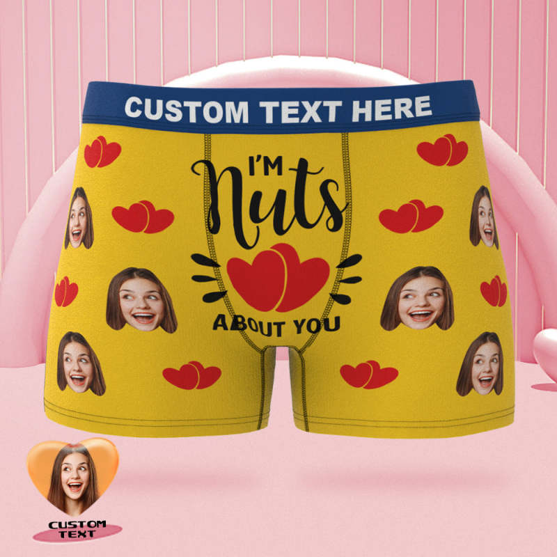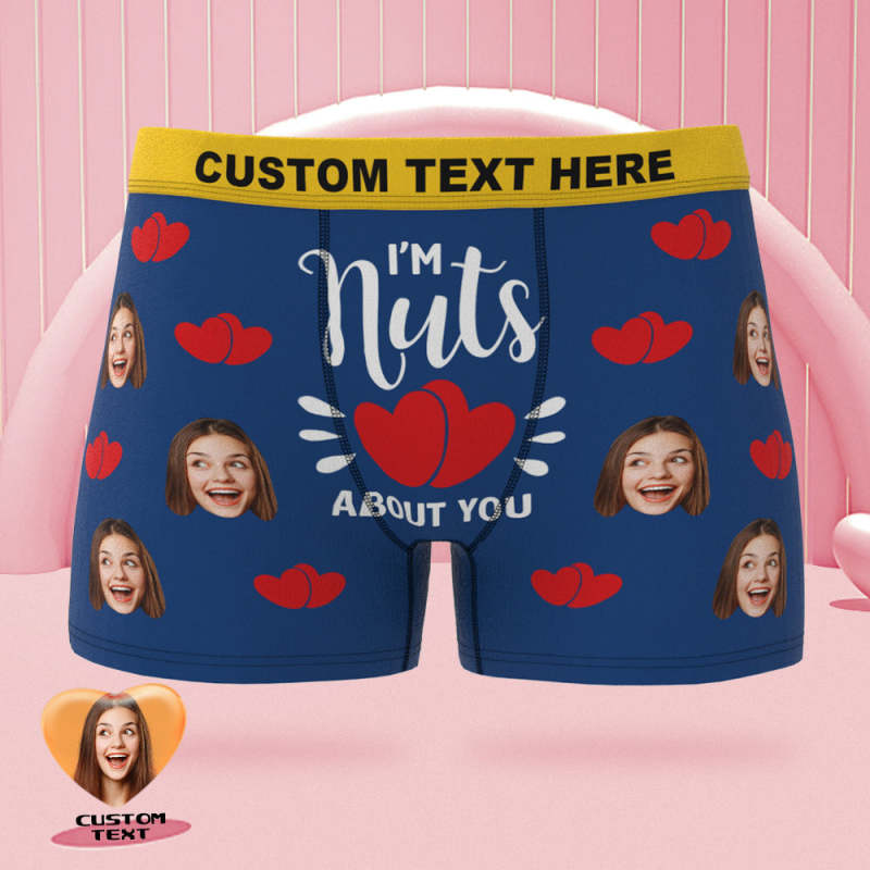Custom Face Pink Boxer Briefs Colorful Waistband Nut's About You Personalised Naughty Gift for Him