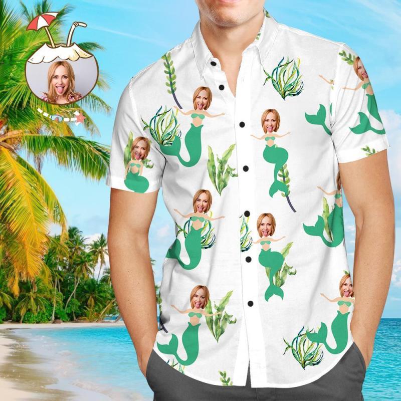 Custom Face Shirt Personalised Photo Men's Hawaiian Shirt Mermaid