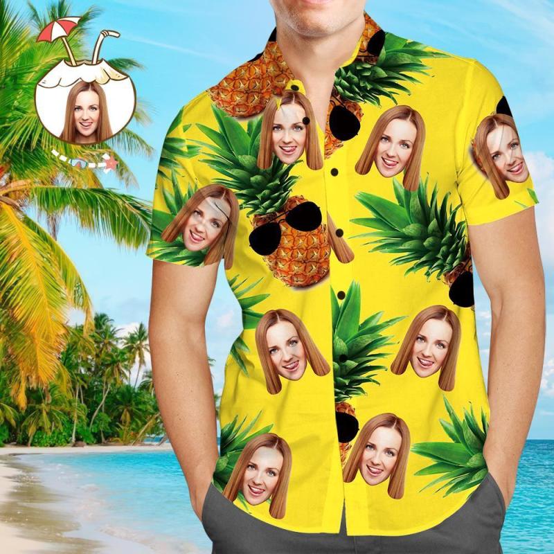 Custom Face Shirt Personalised Photo Men's Hawaiian Shirt Pineapple