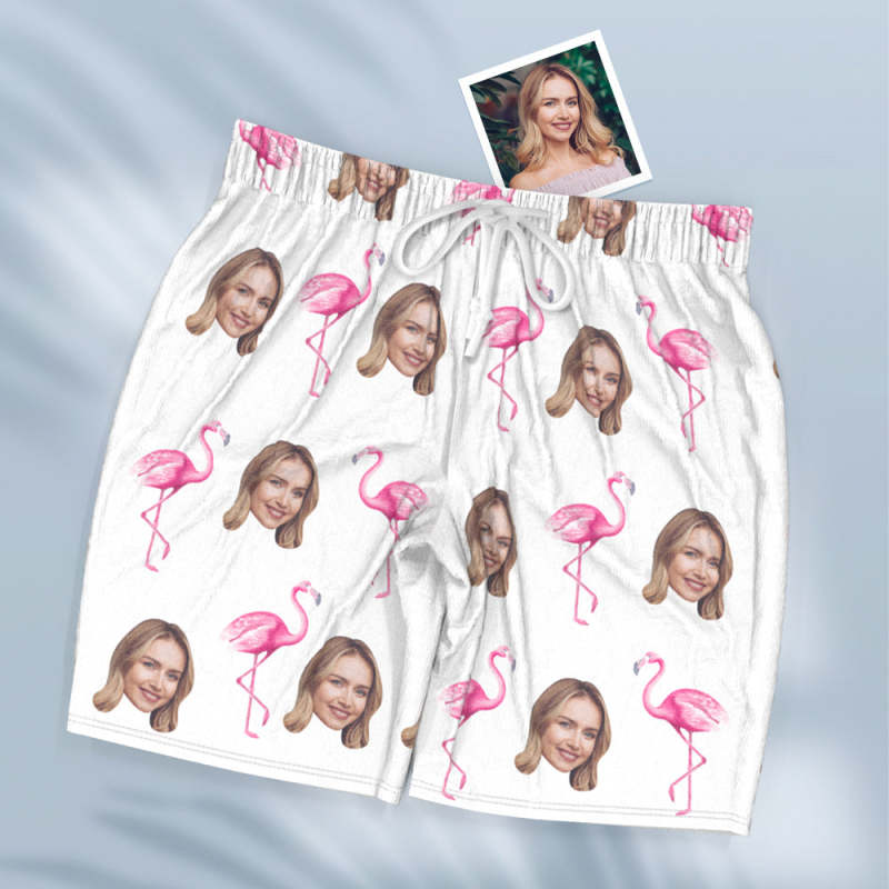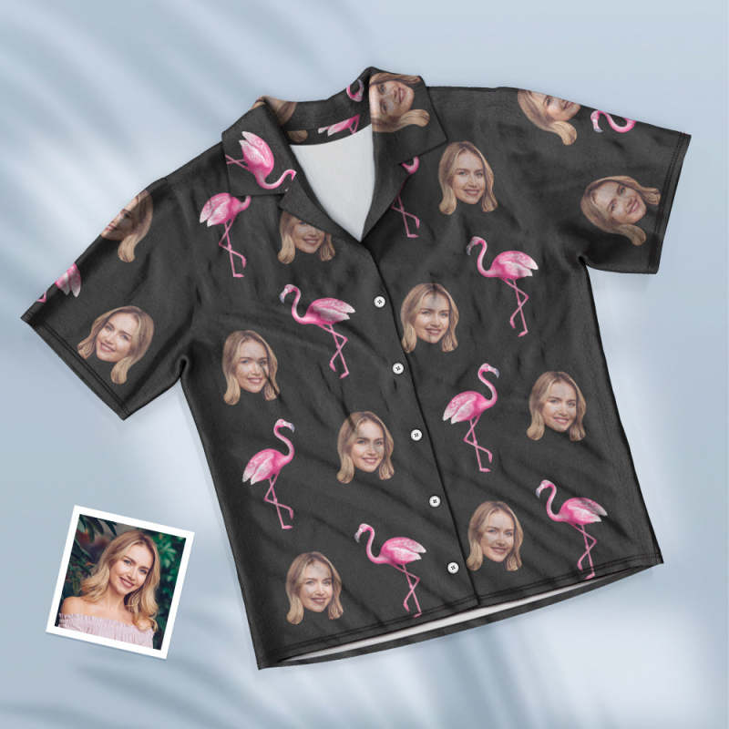 Custom Face Short Sleeved Pajamas Personalised Women's Sleepwear Flamingo Gifts For Her